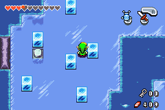 Geht die Treppe hinunter und an der Seite nach oben. Die Eisblöcke könnt ihr wegschieben. Gehe im nächsten Raum nach rechts und die Treppe hinunter.